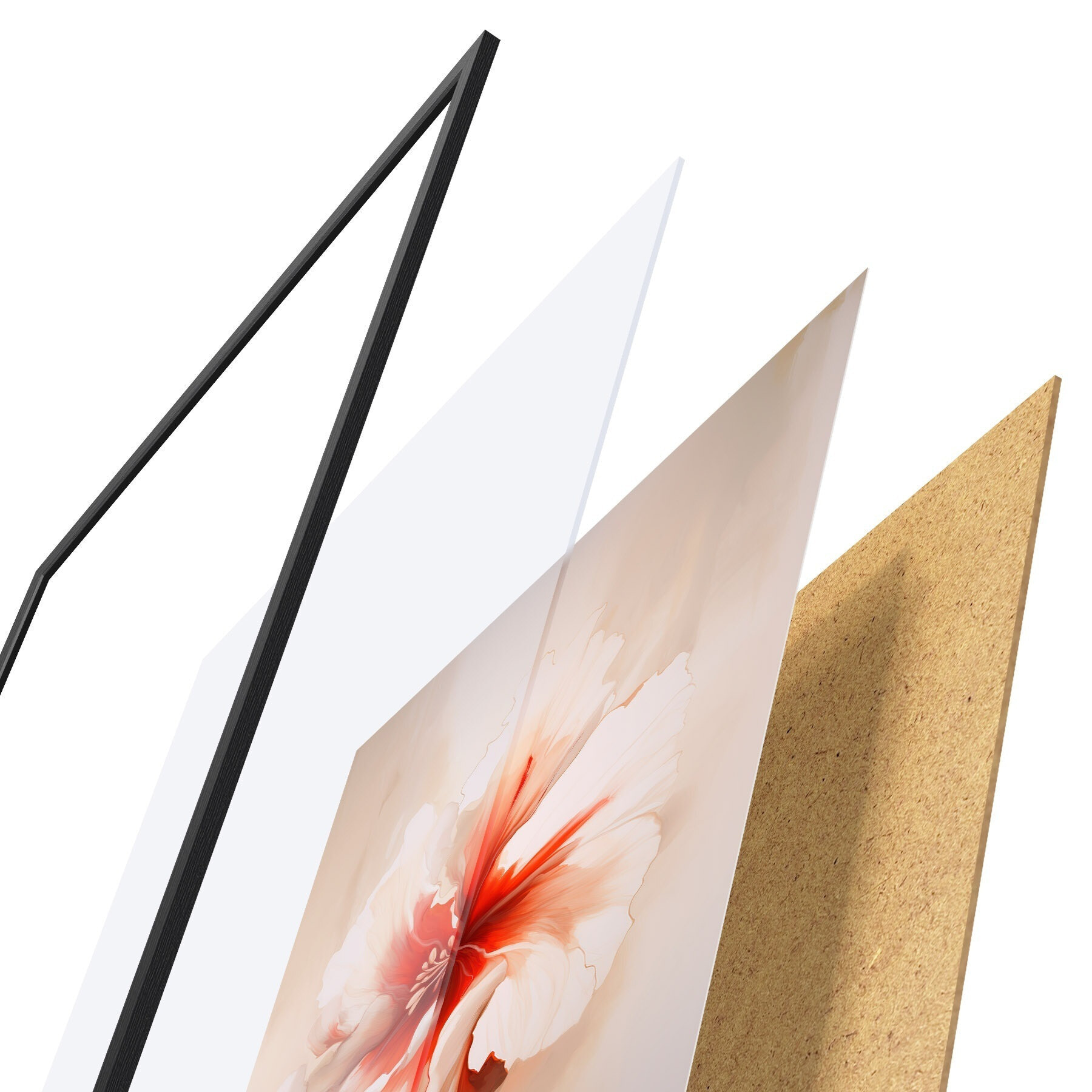 Plakāts sastāv no rāmja, pleksstikla, iespiestā attēla un skaidu plātnes pamatnes. Plakātu var uzreiz piekarināt pie sienas, pateicoties aizmugurē esošajiem stiprinājumiem.