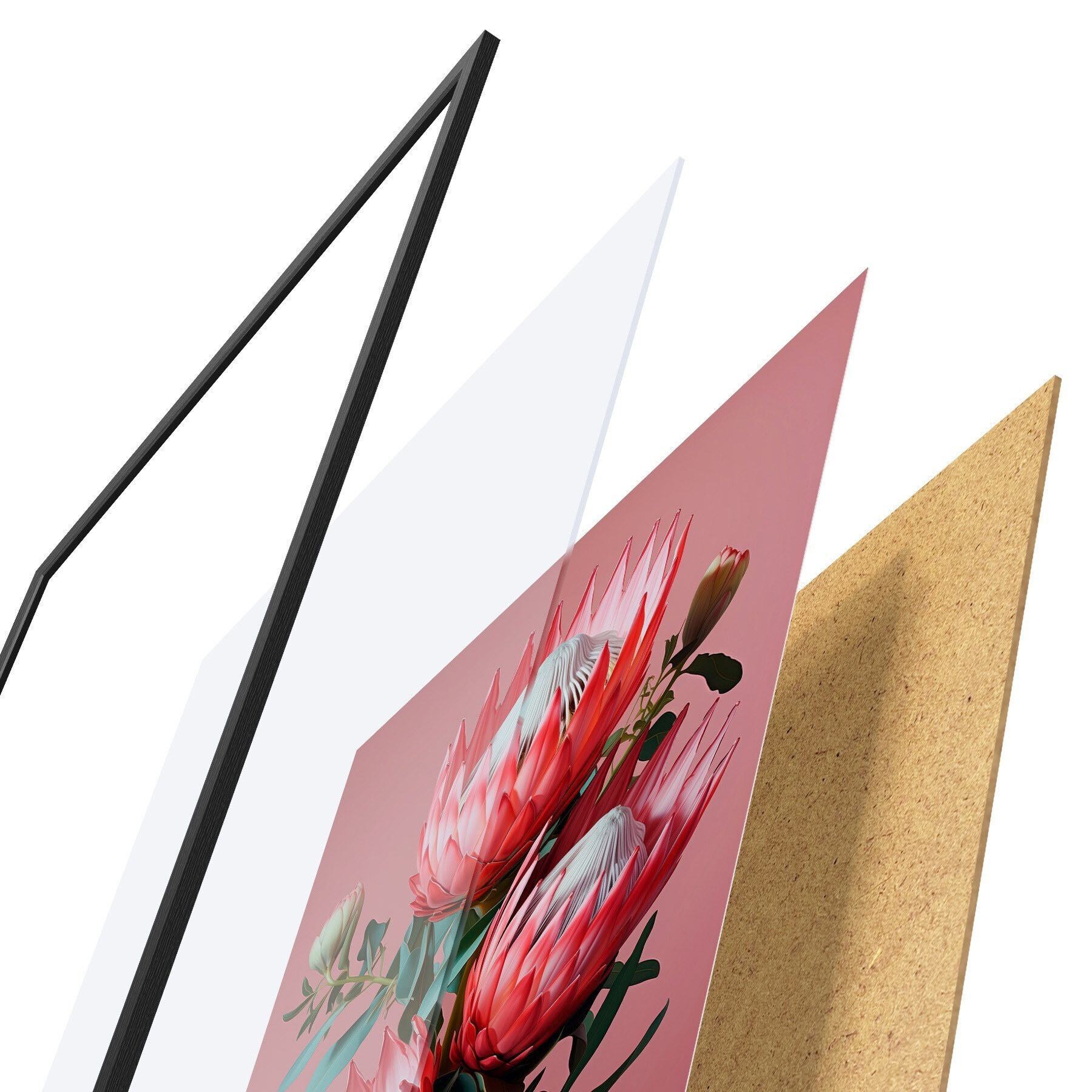 Plakāts sastāv no rāmja, pleksstikla, iespiestā attēla un skaidu plātnes pamatnes. Plakātu var uzreiz piekarināt pie sienas, pateicoties aizmugurē esošajiem stiprinājumiem.