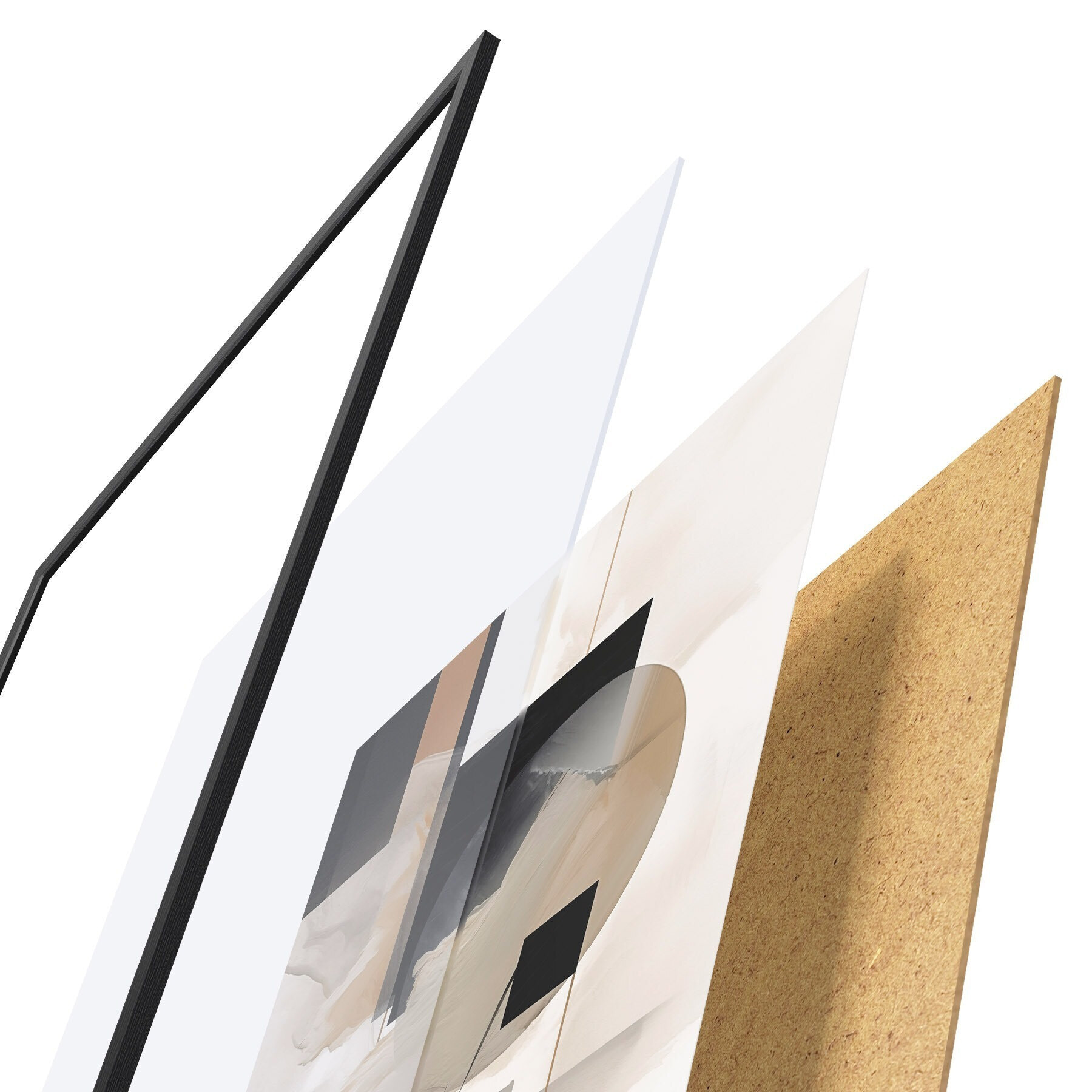 Plakāts sastāv no rāmja, pleksstikla, iespiestā attēla un skaidu plātnes pamatnes. Plakātu var uzreiz piekarināt pie sienas, pateicoties aizmugurē esošajiem stiprinājumiem.