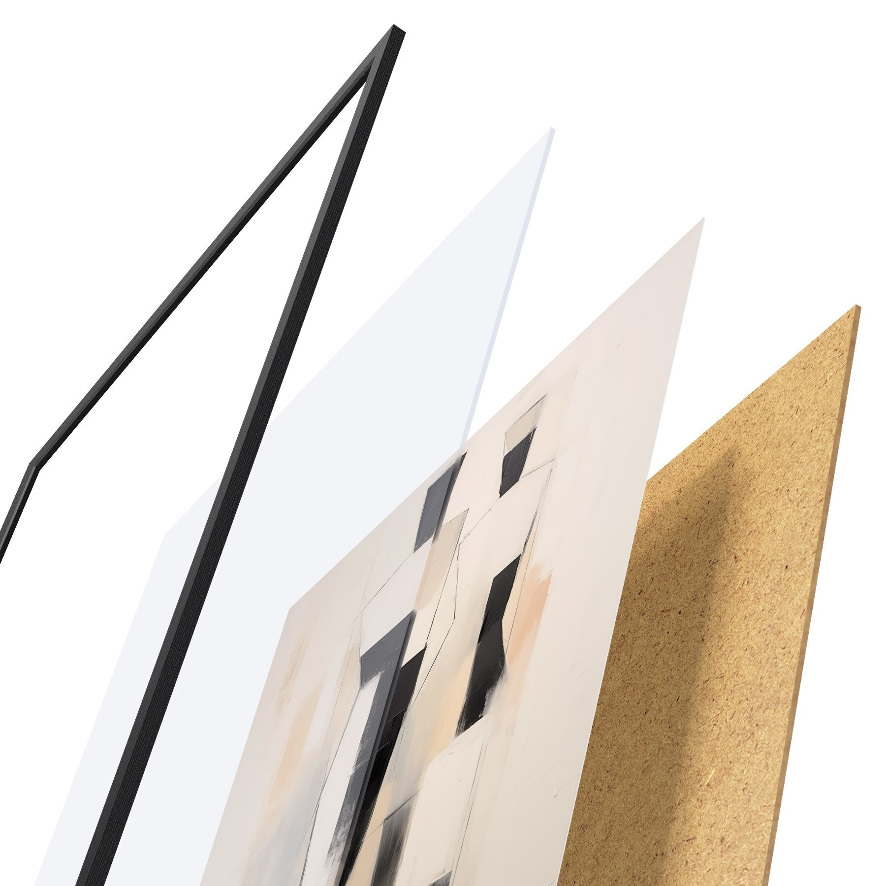 Plakāts sastāv no rāmja, pleksstikla, iespiestā attēla un skaidu plātnes pamatnes. Plakātu var uzreiz piekarināt pie sienas, pateicoties aizmugurē esošajiem stiprinājumiem.