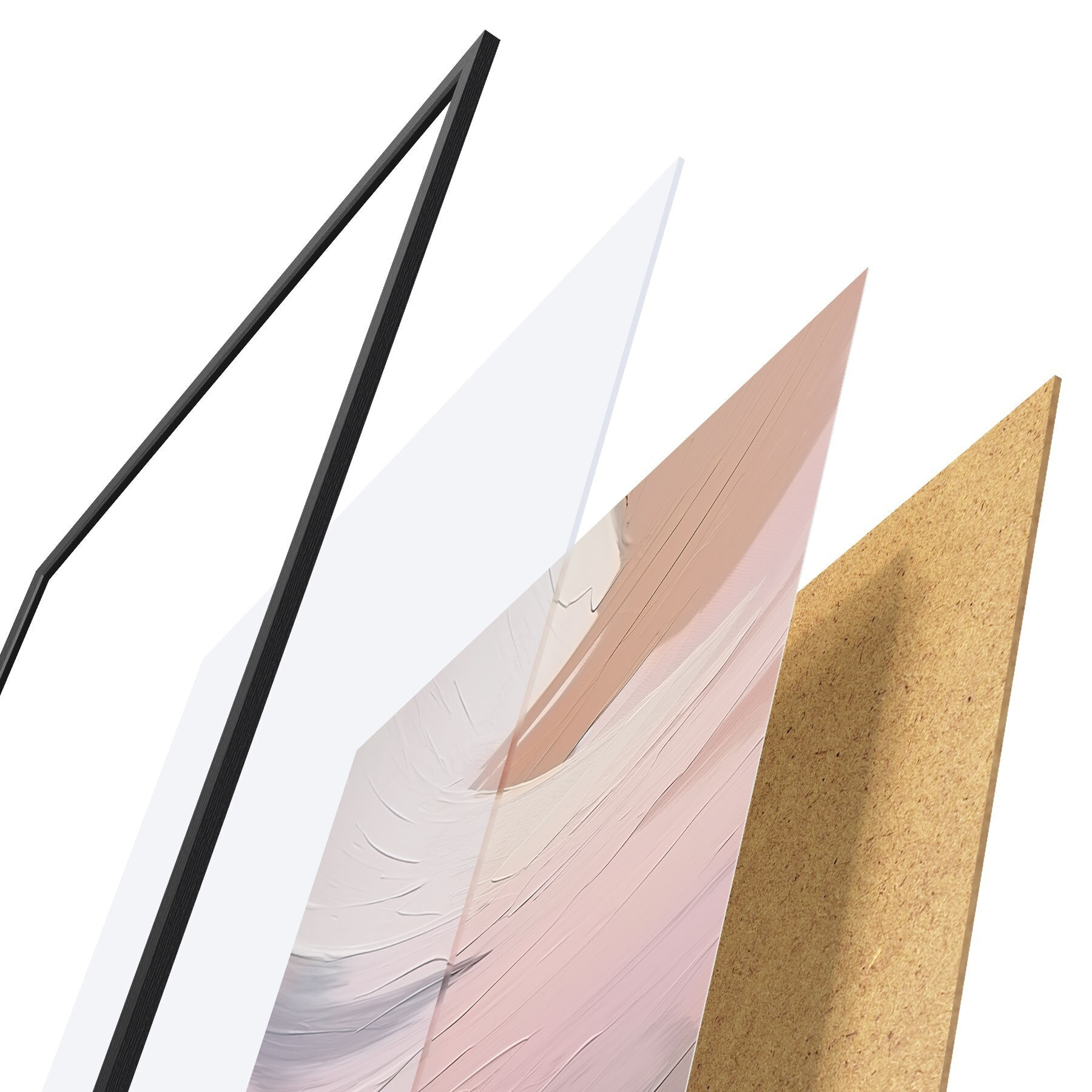 Plakāts sastāv no rāmja, pleksstikla, iespiestā attēla un skaidu plātnes pamatnes. Plakātu var uzreiz piekarināt pie sienas, pateicoties aizmugurē esošajiem stiprinājumiem.