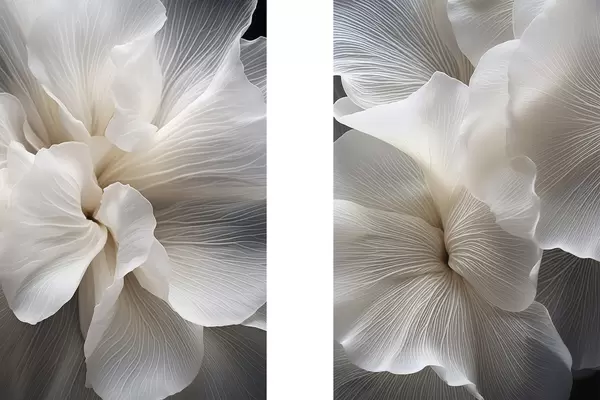 SākumlapaPlakātu katalogsModuļu plakātiPlakāts Tuva uzņēmuma delikātiem abstraktiem baltiem ziedlapiem ar sarežģītām līnijām un izplūdušu tumšu fonu Nr d01117