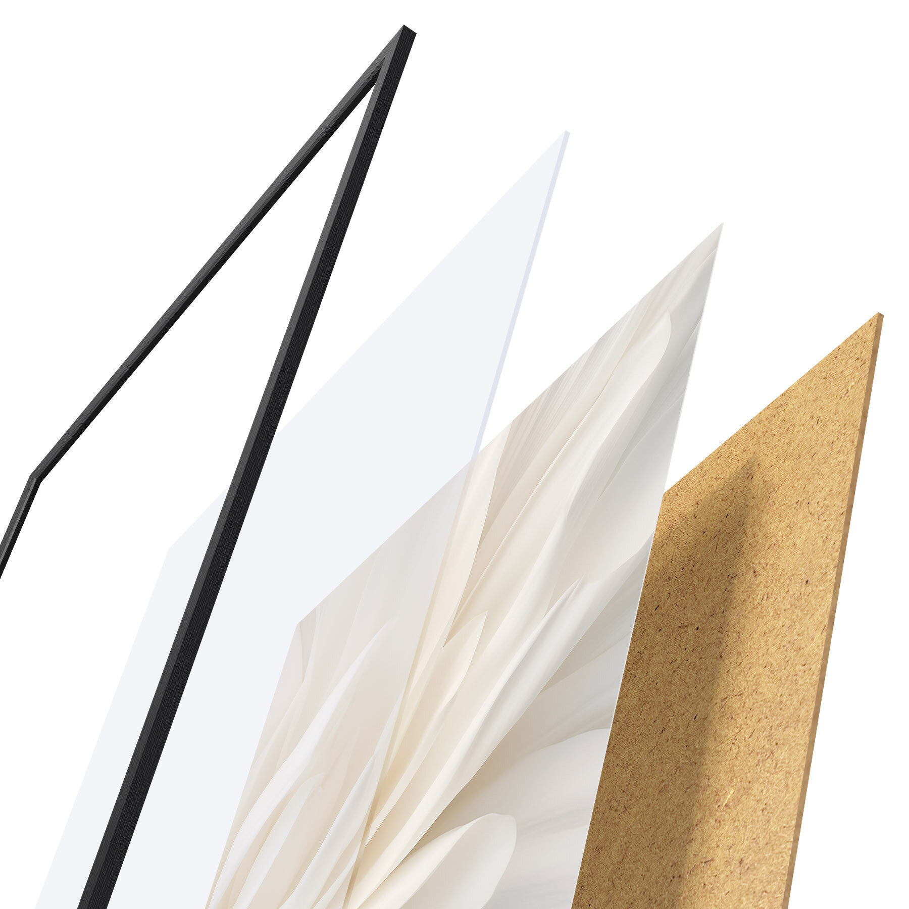Plakāts sastāv no rāmja, pleksstikla, iespiestā attēla un skaidu plātnes pamatnes. Plakātu var uzreiz piekarināt pie sienas, pateicoties aizmugurē esošajiem stiprinājumiem.