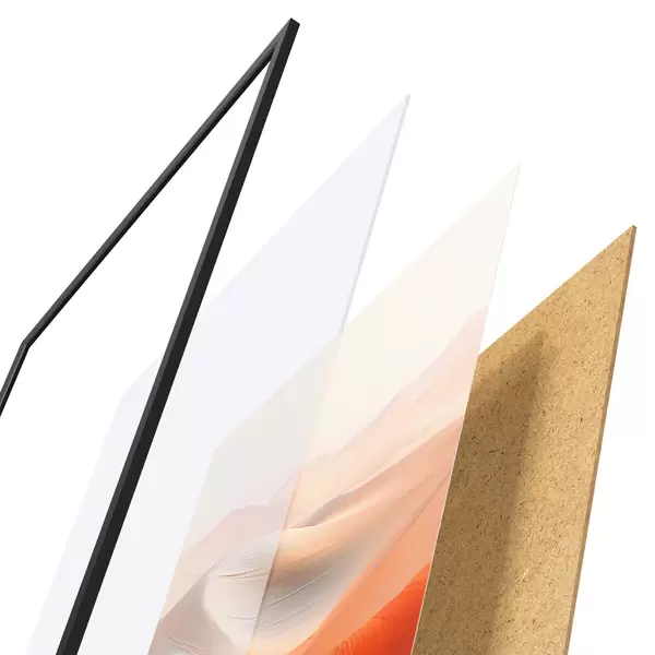 Plakāts sastāv no rāmja, pleksstikla, iespiestā attēla un skaidu plātnes pamatnes. Plakātu var uzreiz piekarināt pie sienas, pateicoties aizmugurē esošajiem stiprinājumiem.