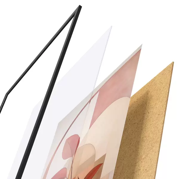 Plakāts sastāv no rāmja, pleksstikla, iespiestā attēla un skaidu plātnes pamatnes. Plakātu var uzreiz piekarināt pie sienas, pateicoties aizmugurē esošajiem stiprinājumiem.