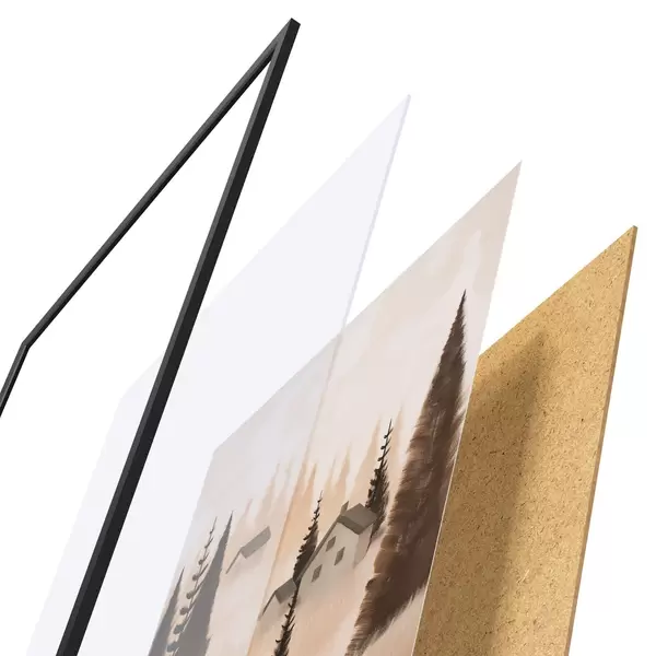 Plakāts sastāv no rāmja, pleksstikla, iespiestā attēla un skaidu plātnes pamatnes. Plakātu var uzreiz piekarināt pie sienas, pateicoties aizmugurē esošajiem stiprinājumiem.