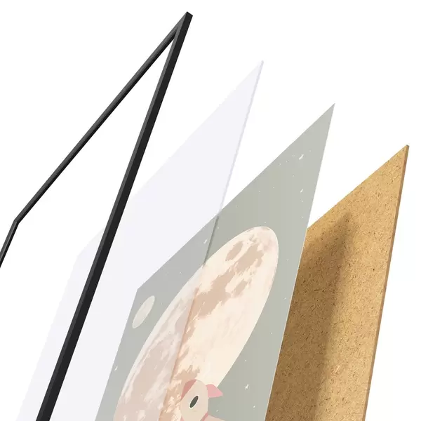 Plakāts sastāv no rāmja, pleksstikla, iespiestā attēla un skaidu plātnes pamatnes. Plakātu var uzreiz piekarināt pie sienas, pateicoties aizmugurē esošajiem stiprinājumiem.