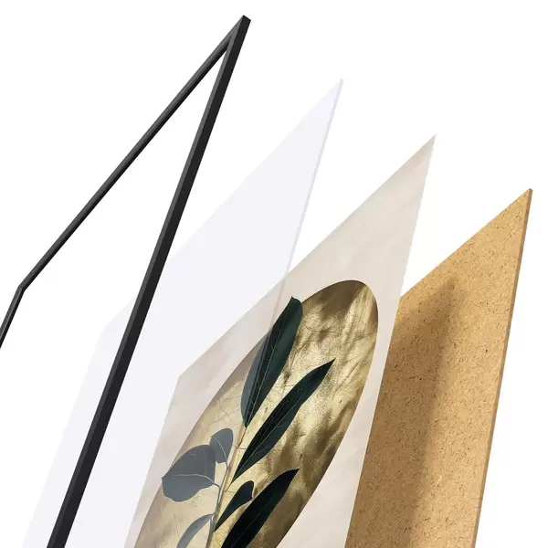 Plakāts sastāv no rāmja, pleksstikla, iespiestā attēla un skaidu plātnes pamatnes. Plakātu var uzreiz piekarināt pie sienas, pateicoties aizmugurē esošajiem stiprinājumiem.