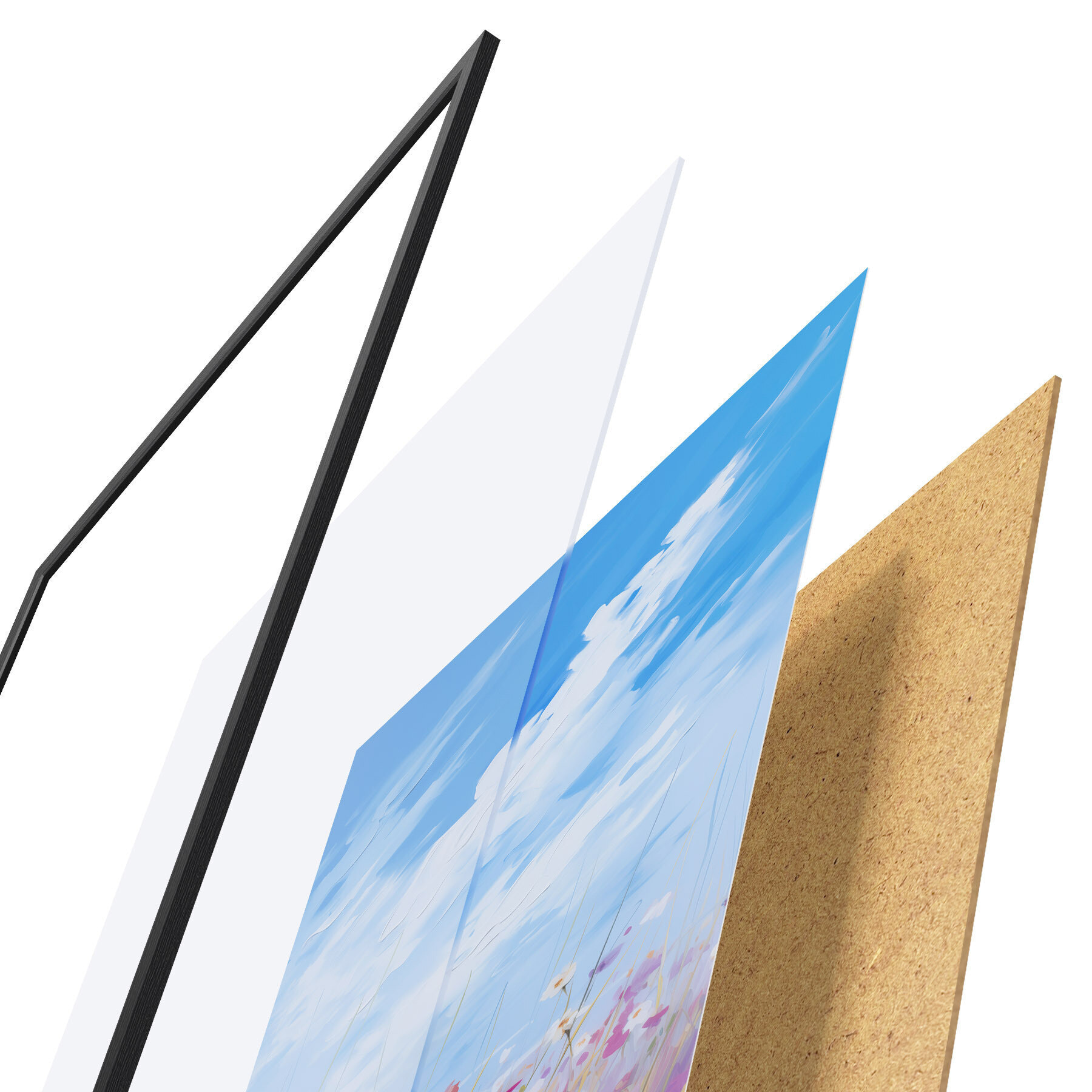 Plakāts sastāv no rāmja, pleksstikla, iespiestā attēla un skaidu plātnes pamatnes. Plakātu var uzreiz piekarināt pie sienas, pateicoties aizmugurē esošajiem stiprinājumiem.