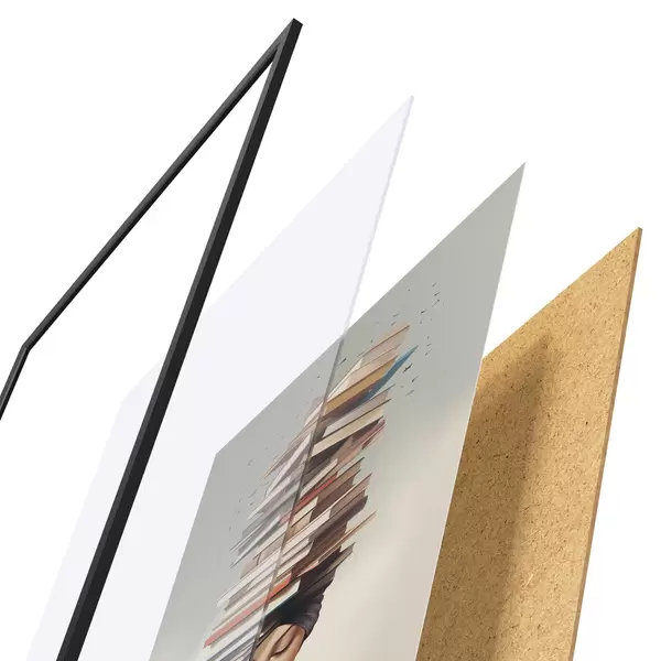 Plakāts sastāv no rāmja, pleksstikla, iespiestā attēla un skaidu plātnes pamatnes. Plakātu var uzreiz piekarināt pie sienas, pateicoties aizmugurē esošajiem stiprinājumiem.