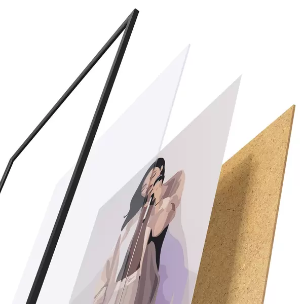 Plakāts sastāv no rāmja, pleksstikla, iespiestā attēla un skaidu plātnes pamatnes. Plakātu var uzreiz piekarināt pie sienas, pateicoties aizmugurē esošajiem stiprinājumiem.