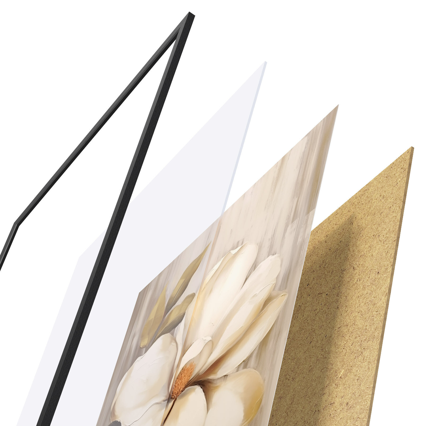 Plakāts sastāv no rāmja, pleksstikla, iespiestā attēla un skaidu plātnes pamatnes. Plakātu var uzreiz piekarināt pie sienas, pateicoties aizmugurē esošajiem stiprinājumiem.