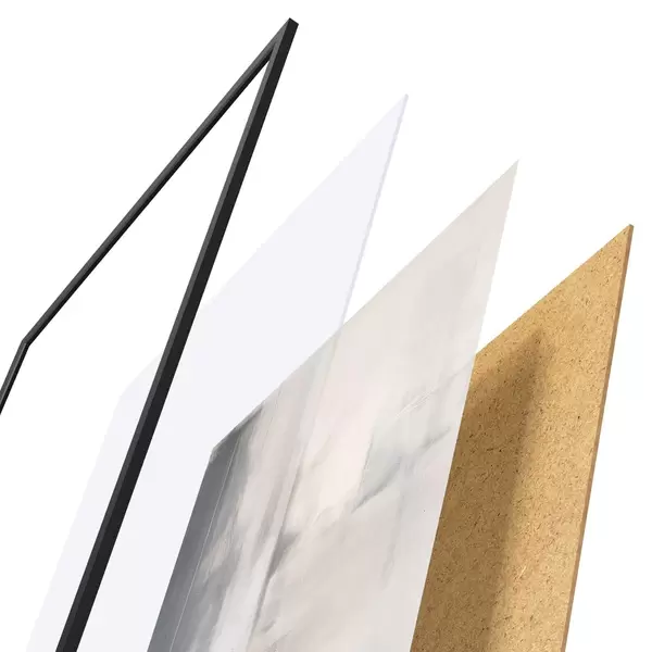 Plakāts sastāv no rāmja, pleksstikla, iespiestā attēla un skaidu plātnes pamatnes. Plakātu var uzreiz piekarināt pie sienas, pateicoties aizmugurē esošajiem stiprinājumiem.