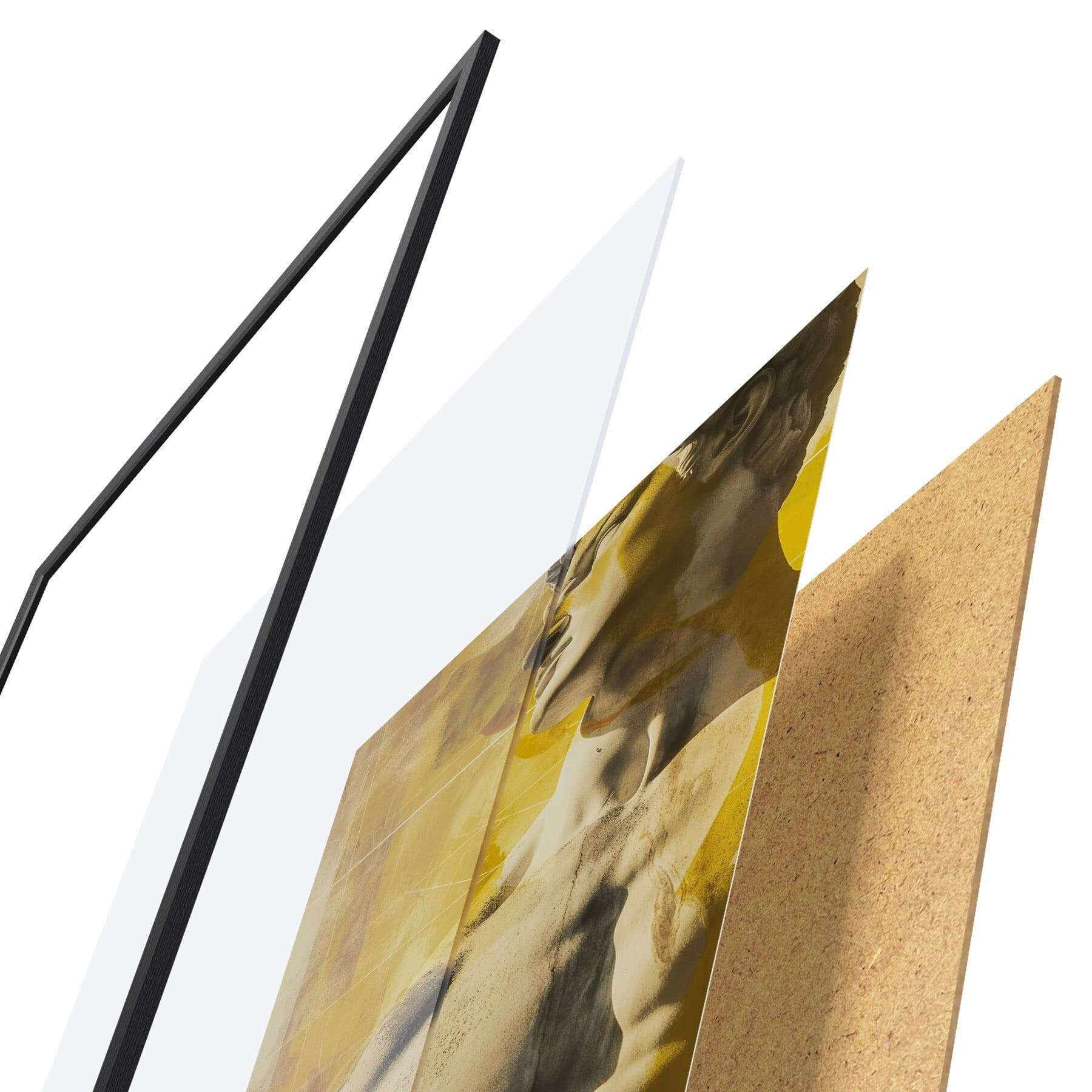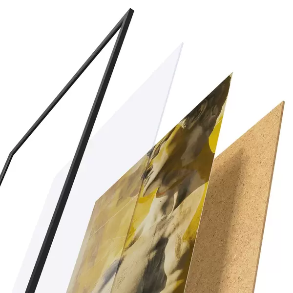Plakāts sastāv no rāmja, pleksstikla, iespiestā attēla un skaidu plātnes pamatnes. Plakātu var uzreiz piekarināt pie sienas, pateicoties aizmugurē esošajiem stiprinājumiem.