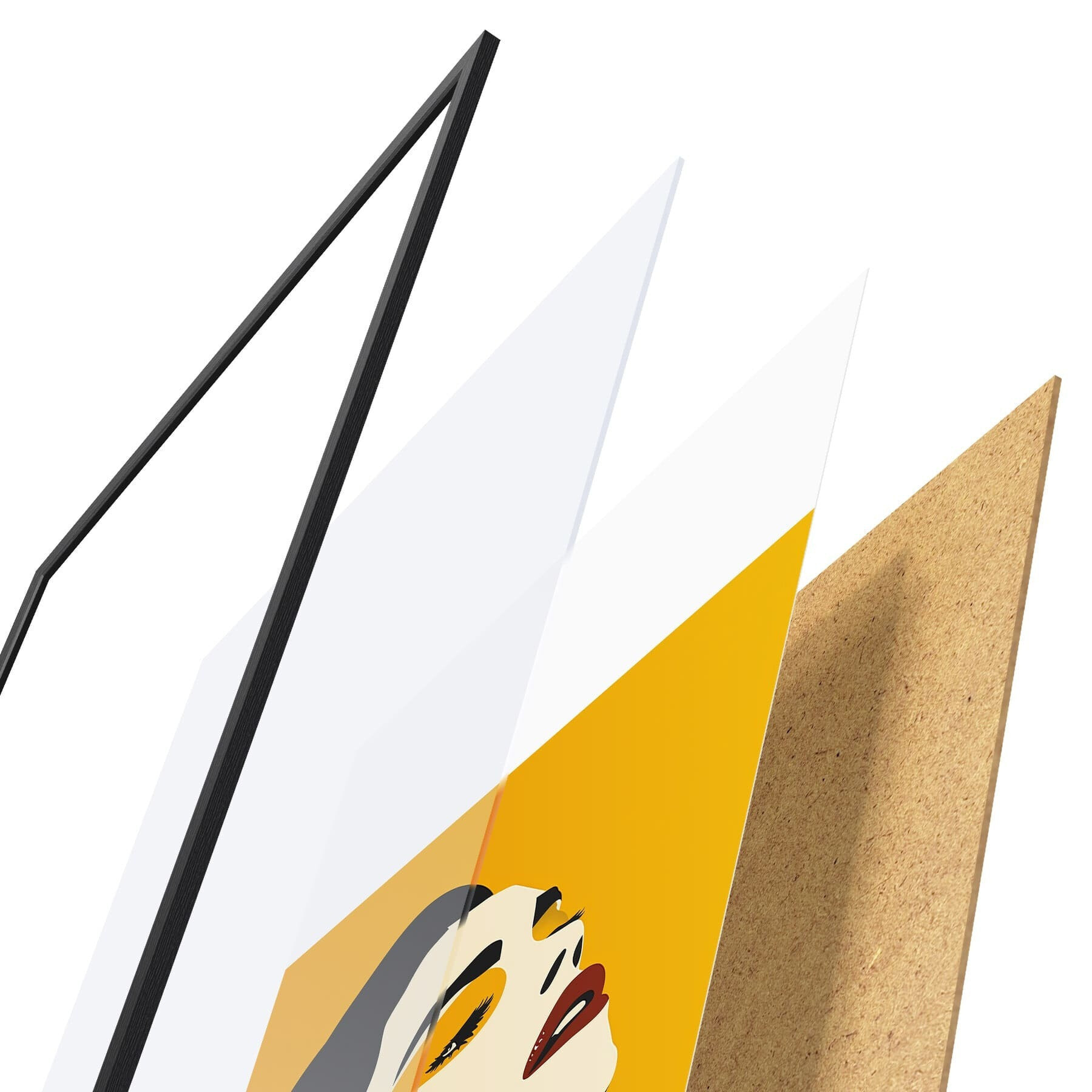 Plakāts sastāv no rāmja, pleksstikla, iespiestā attēla un skaidu plātnes pamatnes. Plakātu var uzreiz piekarināt pie sienas, pateicoties aizmugurē esošajiem stiprinājumiem.