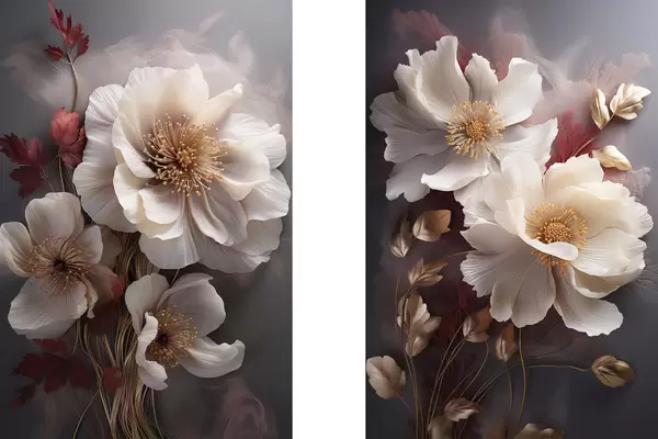 SākumlapaPlakātu katalogsPlakāti ziediPlakāts Delikātas peonijas ar plānām, plūstošām ziedlapām, apņemtas ar tumši sarkanām un dzeltenām lapām uz abstraktā fona Nr d01243