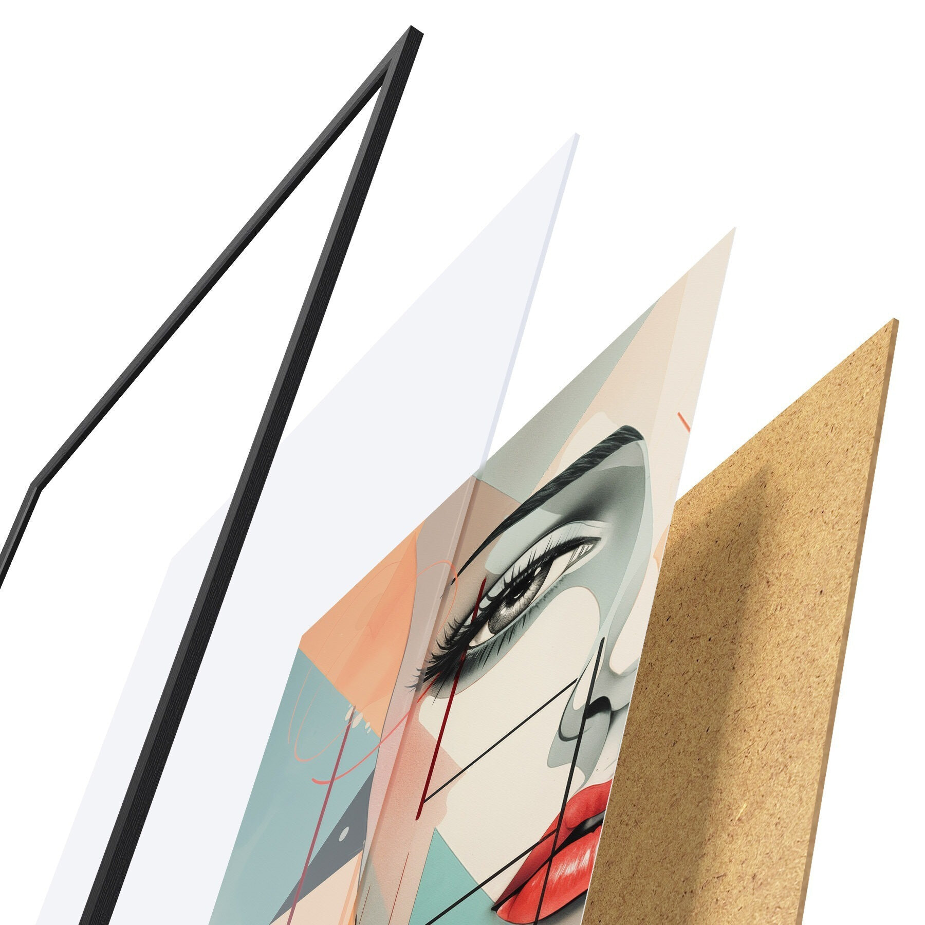 Plakāts sastāv no rāmja, pleksstikla, iespiestā attēla un skaidu plātnes pamatnes. Plakātu var uzreiz piekarināt pie sienas, pateicoties aizmugurē esošajiem stiprinājumiem.