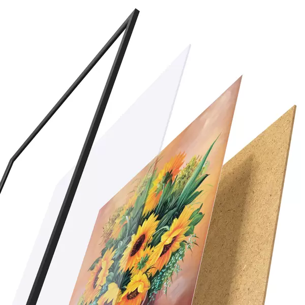 Plakāts sastāv no rāmja, pleksstikla, iespiestā attēla un skaidu plātnes pamatnes. Plakātu var uzreiz piekarināt pie sienas, pateicoties aizmugurē esošajiem stiprinājumiem.