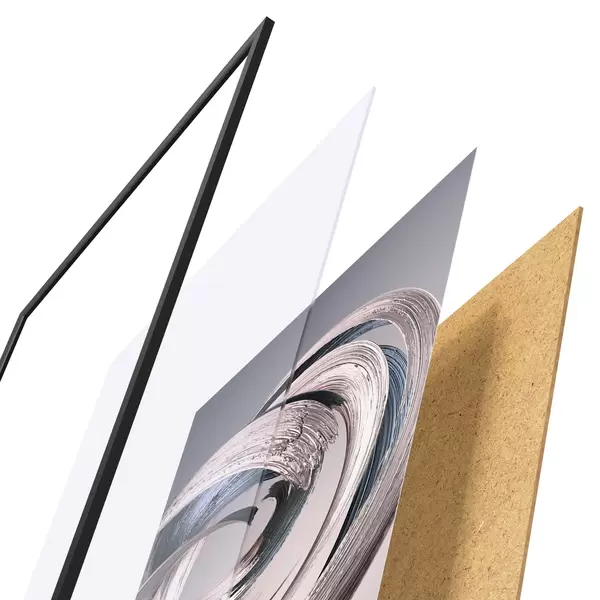 Plakāts sastāv no rāmja, pleksstikla, iespiestā attēla un skaidu plātnes pamatnes. Plakātu var uzreiz piekarināt pie sienas, pateicoties aizmugurē esošajiem stiprinājumiem.