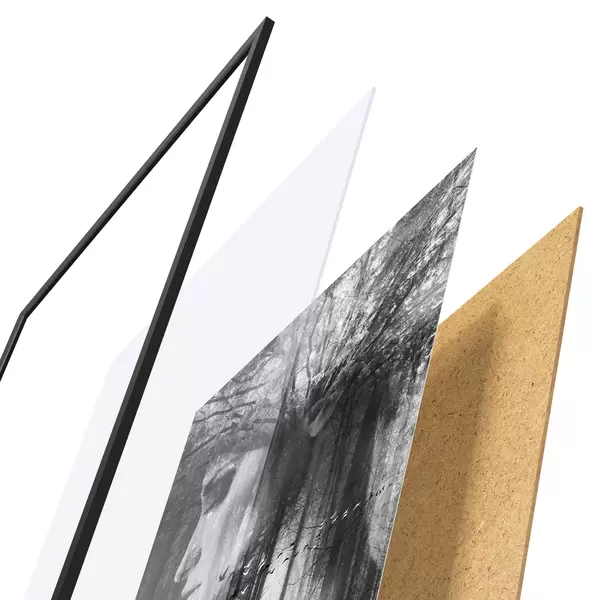 Plakāts sastāv no rāmja, pleksstikla, iespiestā attēla un skaidu plātnes pamatnes. Plakātu var uzreiz piekarināt pie sienas, pateicoties aizmugurē esošajiem stiprinājumiem.