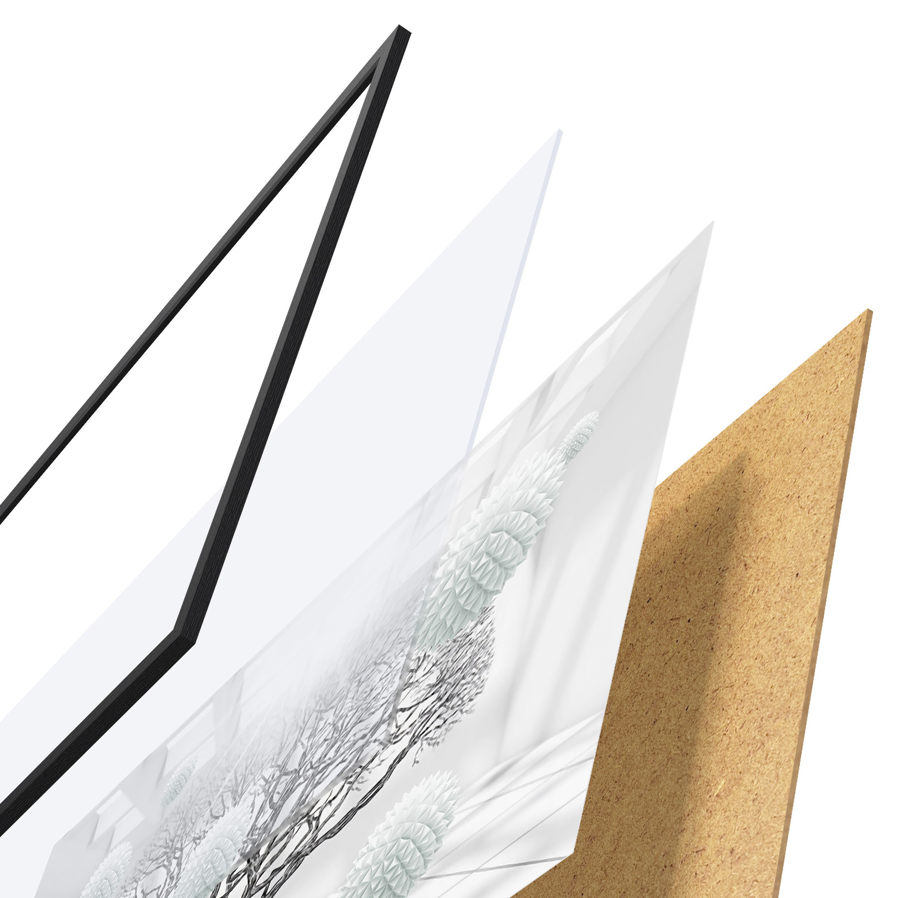 Plakāts sastāv no rāmja, pleksstikla, iespiestā attēla un skaidu plātnes pamatnes. Plakātu var uzreiz piekarināt pie sienas, pateicoties aizmugurē esošajiem stiprinājumiem.