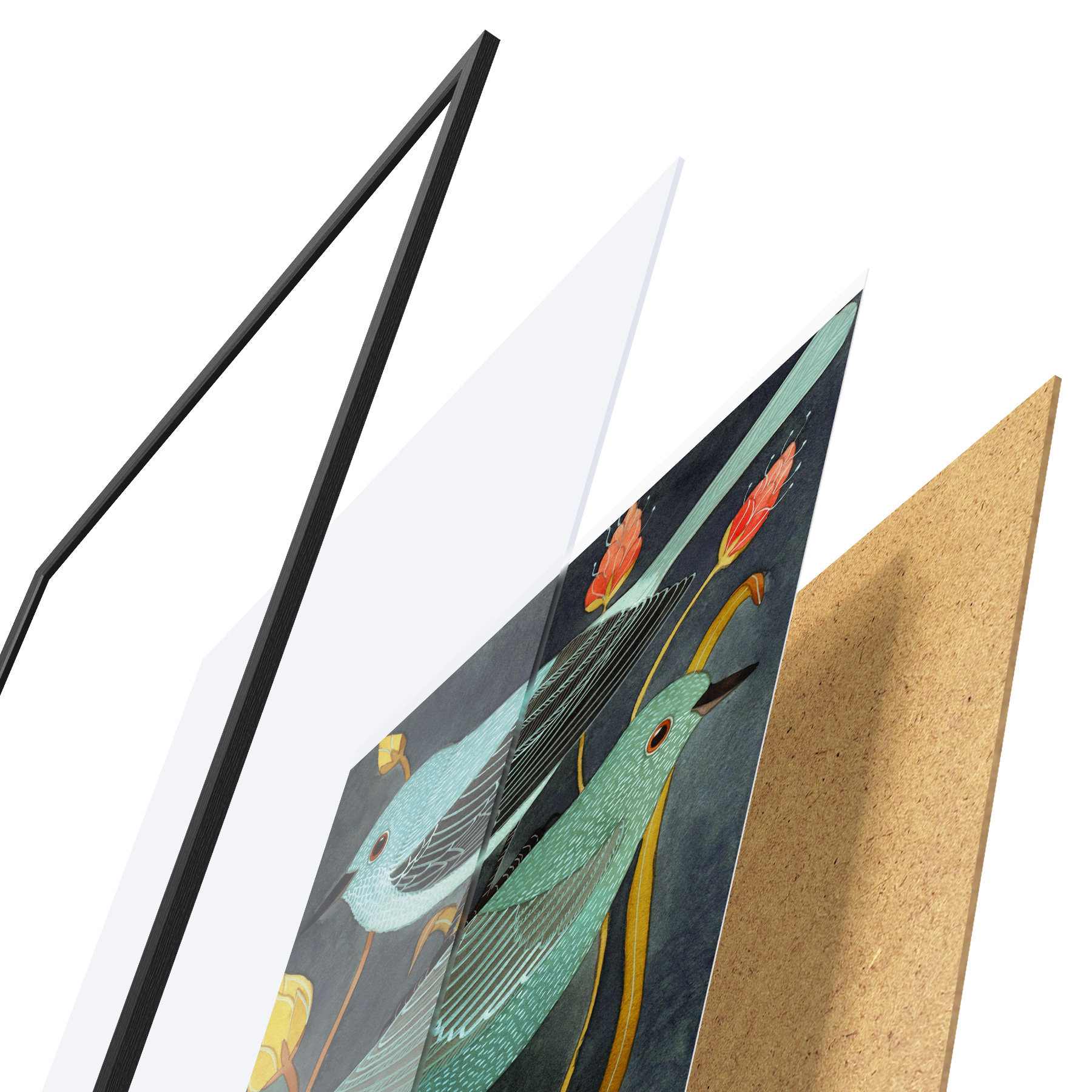Plakāts sastāv no rāmja, pleksstikla, iespiestā attēla un skaidu plātnes pamatnes. Plakātu var uzreiz piekarināt pie sienas, pateicoties aizmugurē esošajiem stiprinājumiem.