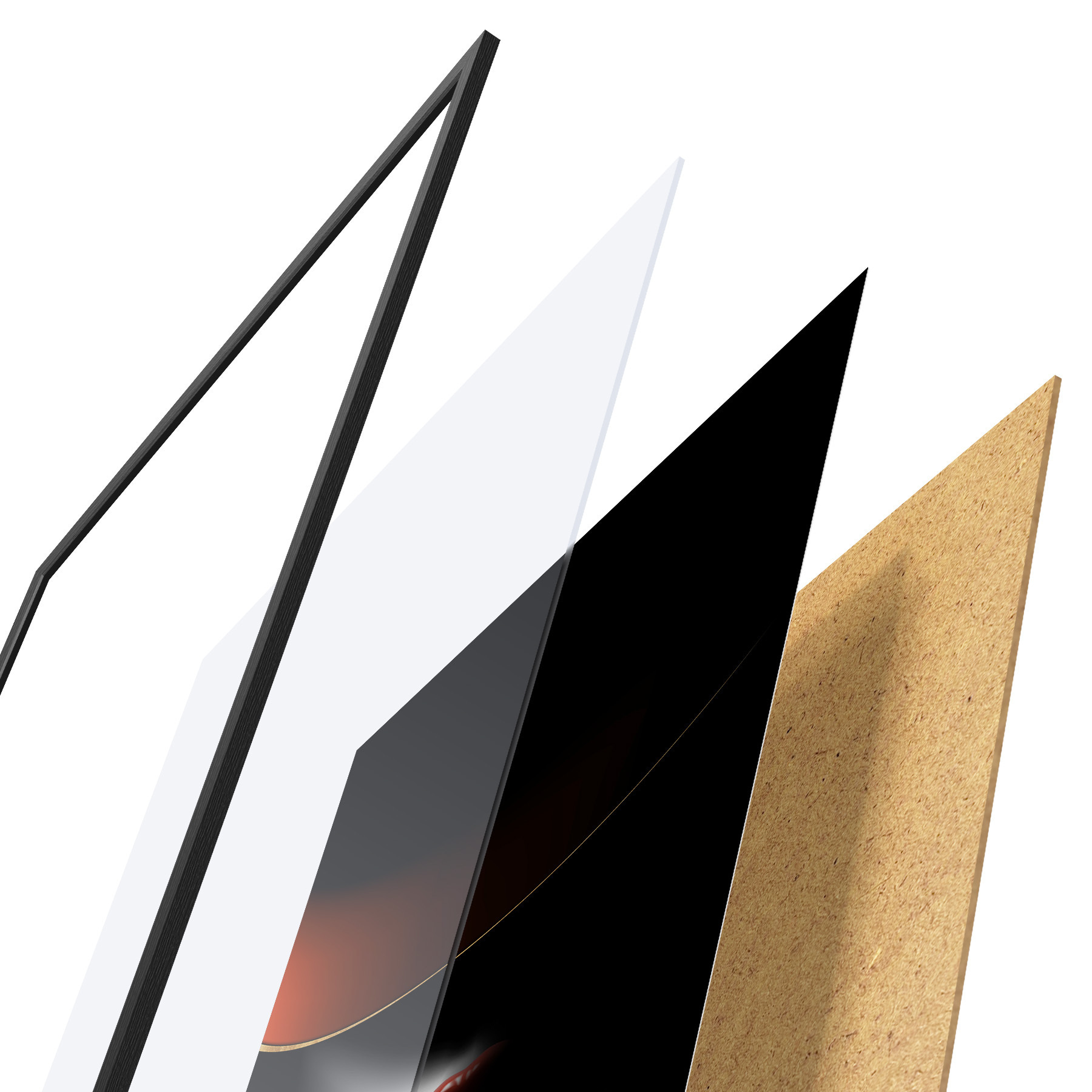 Plakāts sastāv no rāmja, pleksstikla, iespiestā attēla un skaidu plātnes pamatnes. Plakātu var uzreiz piekarināt pie sienas, pateicoties aizmugurē esošajiem stiprinājumiem.