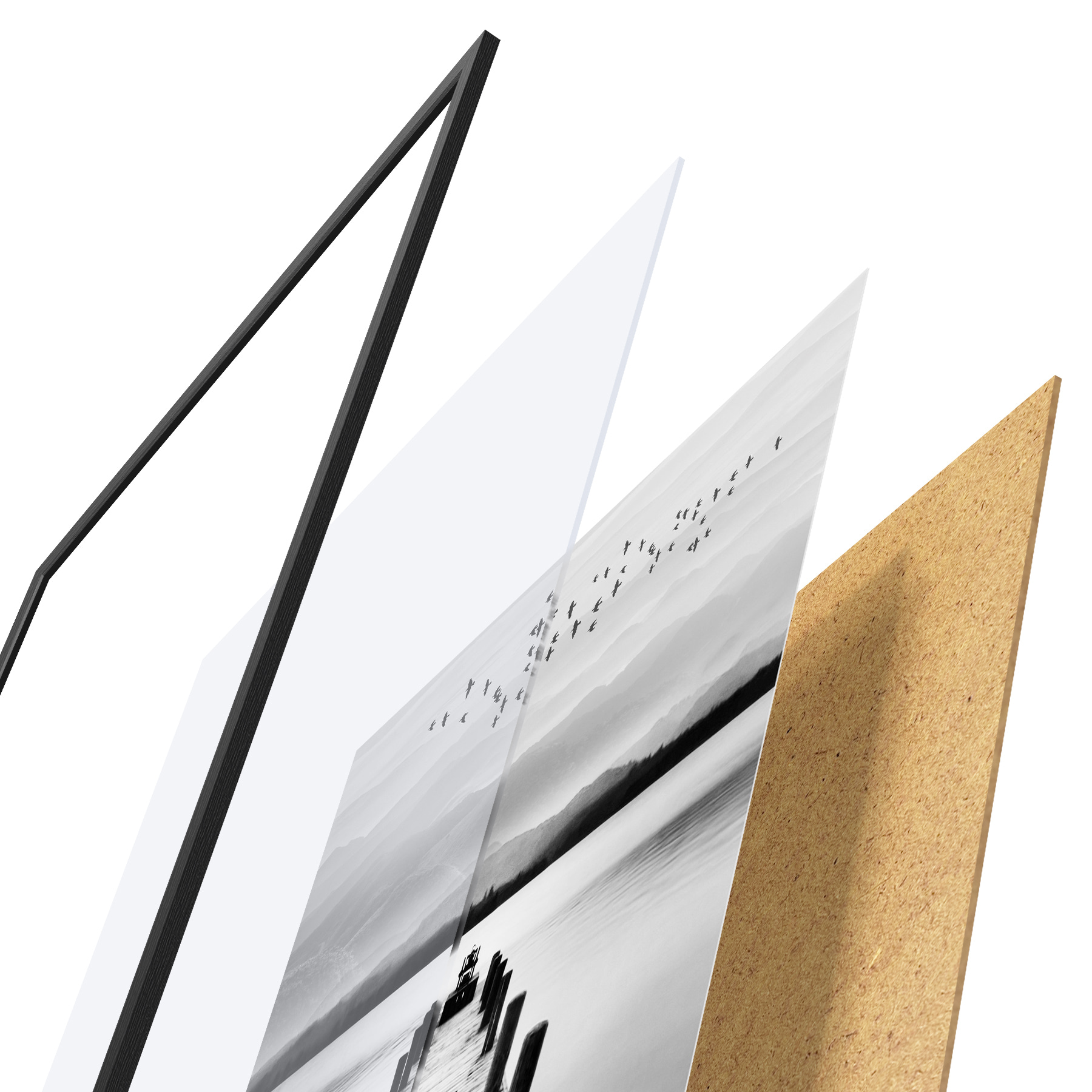 Plakāts sastāv no rāmja, pleksstikla, iespiestā attēla un skaidu plātnes pamatnes. Plakātu var uzreiz piekarināt pie sienas, pateicoties aizmugurē esošajiem stiprinājumiem.