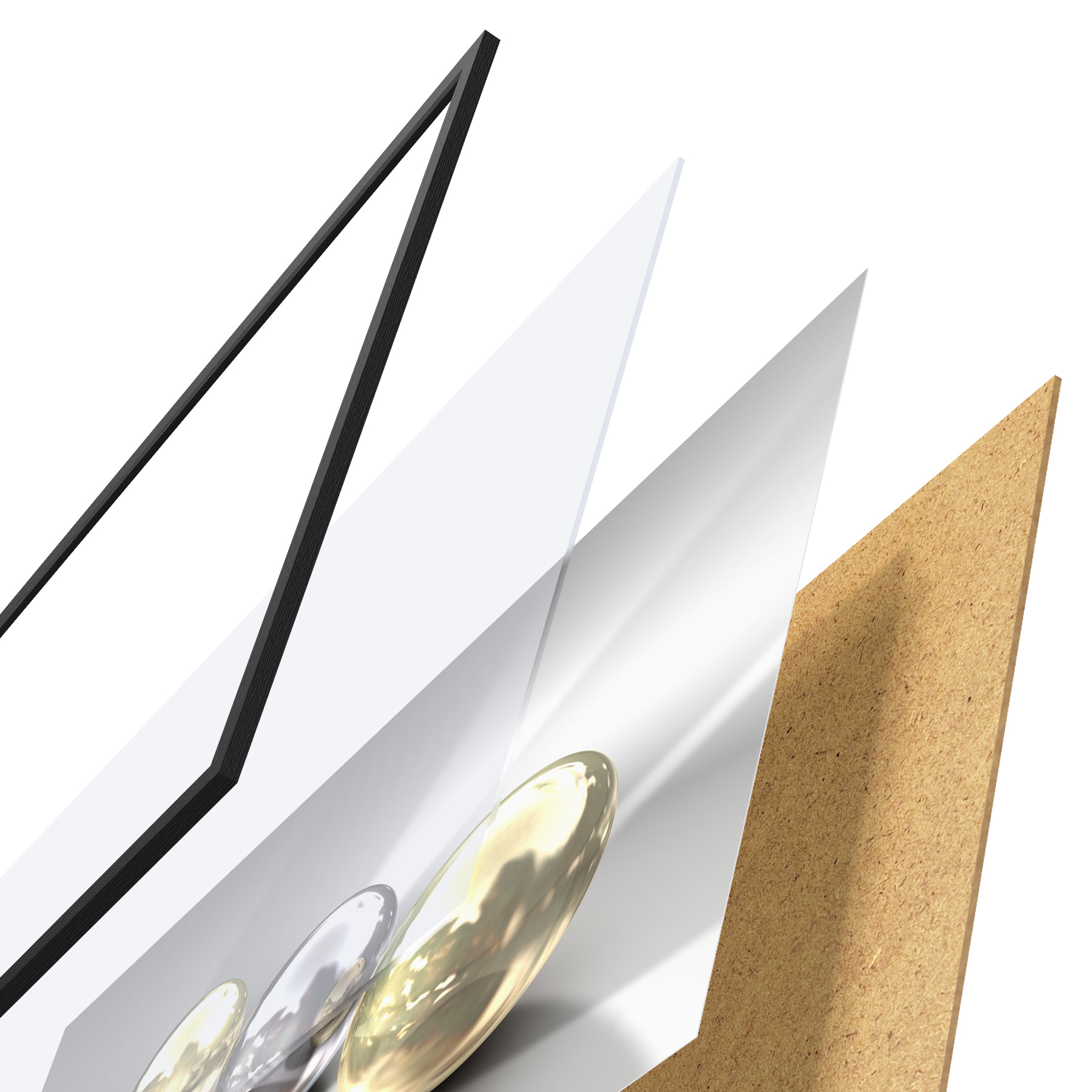 Plakāts sastāv no rāmja, pleksstikla, iespiestā attēla un skaidu plātnes pamatnes. Plakātu var uzreiz piekarināt pie sienas, pateicoties aizmugurē esošajiem stiprinājumiem.