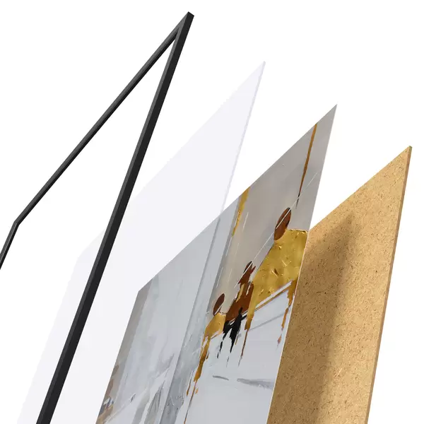Plakāts sastāv no rāmja, pleksstikla, iespiestā attēla un skaidu plātnes pamatnes. Plakātu var uzreiz piekarināt pie sienas, pateicoties aizmugurē esošajiem stiprinājumiem.