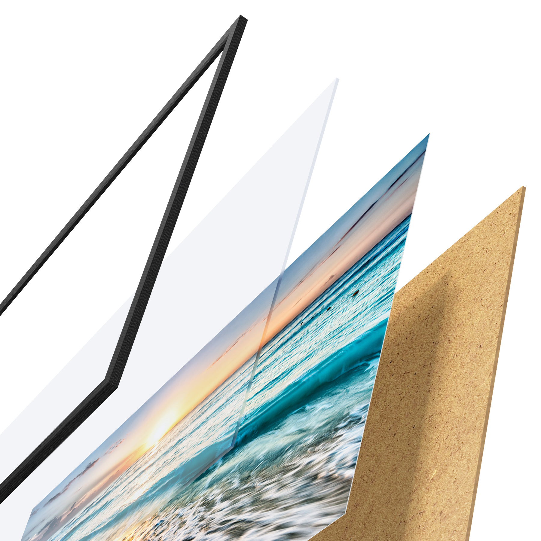 Plakāts sastāv no rāmja, pleksstikla, iespiestā attēla un skaidu plātnes pamatnes. Plakātu var uzreiz piekarināt pie sienas, pateicoties aizmugurē esošajiem stiprinājumiem.