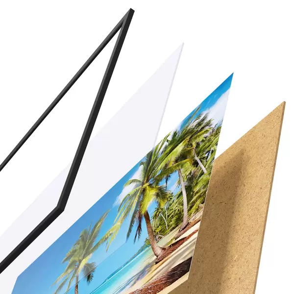 Plakāts sastāv no rāmja, pleksstikla, iespiestā attēla un skaidu plātnes pamatnes. Plakātu var uzreiz piekarināt pie sienas, pateicoties aizmugurē esošajiem stiprinājumiem.