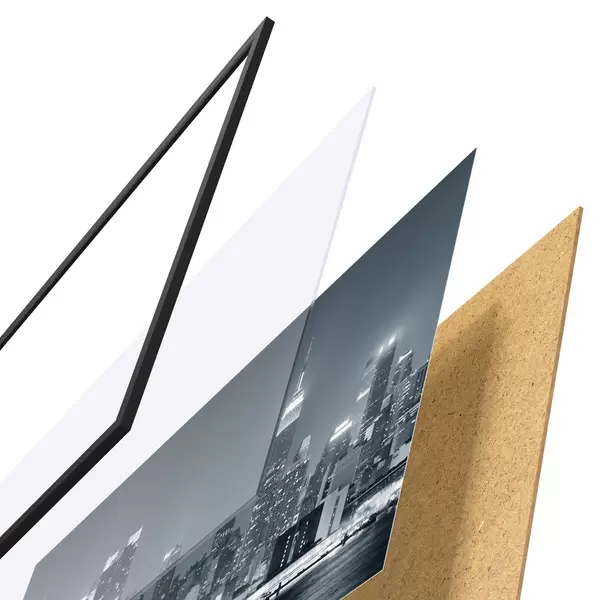 Plakāts sastāv no rāmja, pleksstikla, iespiestā attēla un skaidu plātnes pamatnes. Plakātu var uzreiz piekarināt pie sienas, pateicoties aizmugurē esošajiem stiprinājumiem.