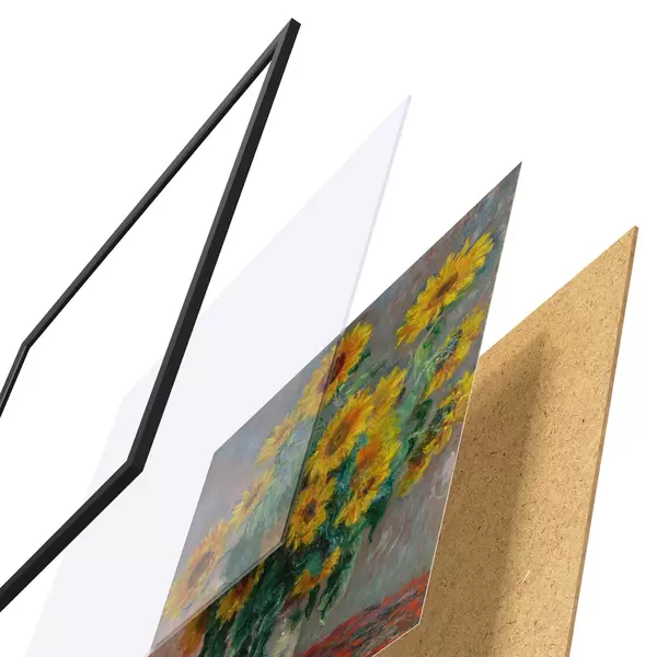 Plakāts sastāv no rāmja, pleksstikla, iespiestā attēla un skaidu plātnes pamatnes. Plakātu var uzreiz piekarināt pie sienas, pateicoties aizmugurē esošajiem stiprinājumiem.