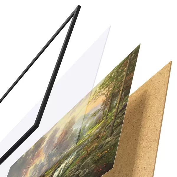 Plakāts sastāv no rāmja, pleksstikla, iespiestā attēla un skaidu plātnes pamatnes. Plakātu var uzreiz piekarināt pie sienas, pateicoties aizmugurē esošajiem stiprinājumiem.