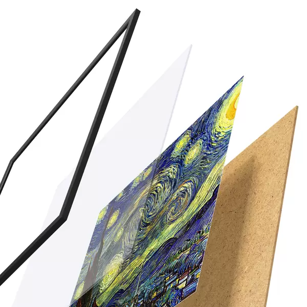 Plakāts sastāv no rāmja, pleksstikla, iespiestā attēla un skaidu plātnes pamatnes. Plakātu var uzreiz piekarināt pie sienas, pateicoties aizmugurē esošajiem stiprinājumiem.