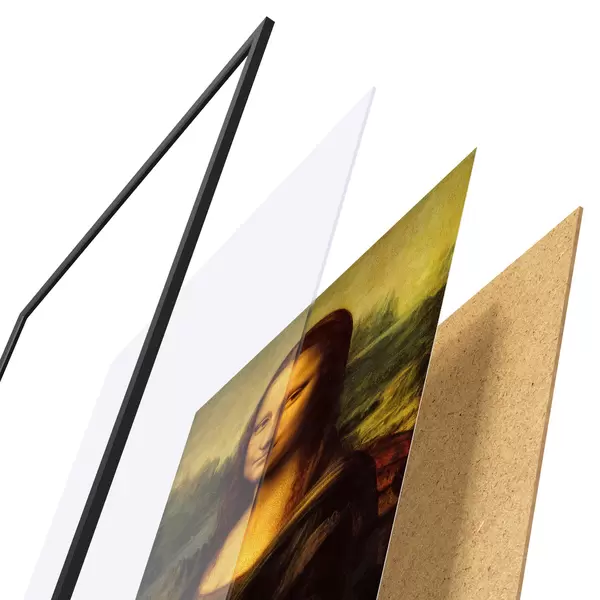 Plakāts sastāv no rāmja, pleksstikla, iespiestā attēla un skaidu plātnes pamatnes. Plakātu var uzreiz piekarināt pie sienas, pateicoties aizmugurē esošajiem stiprinājumiem.