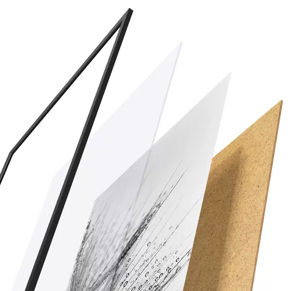 Plakāts sastāv no rāmja, pleksstikla, iespiestā attēla un skaidu plātnes pamatnes. Plakātu var uzreiz piekarināt pie sienas, pateicoties aizmugurē esošajiem stiprinājumiem.