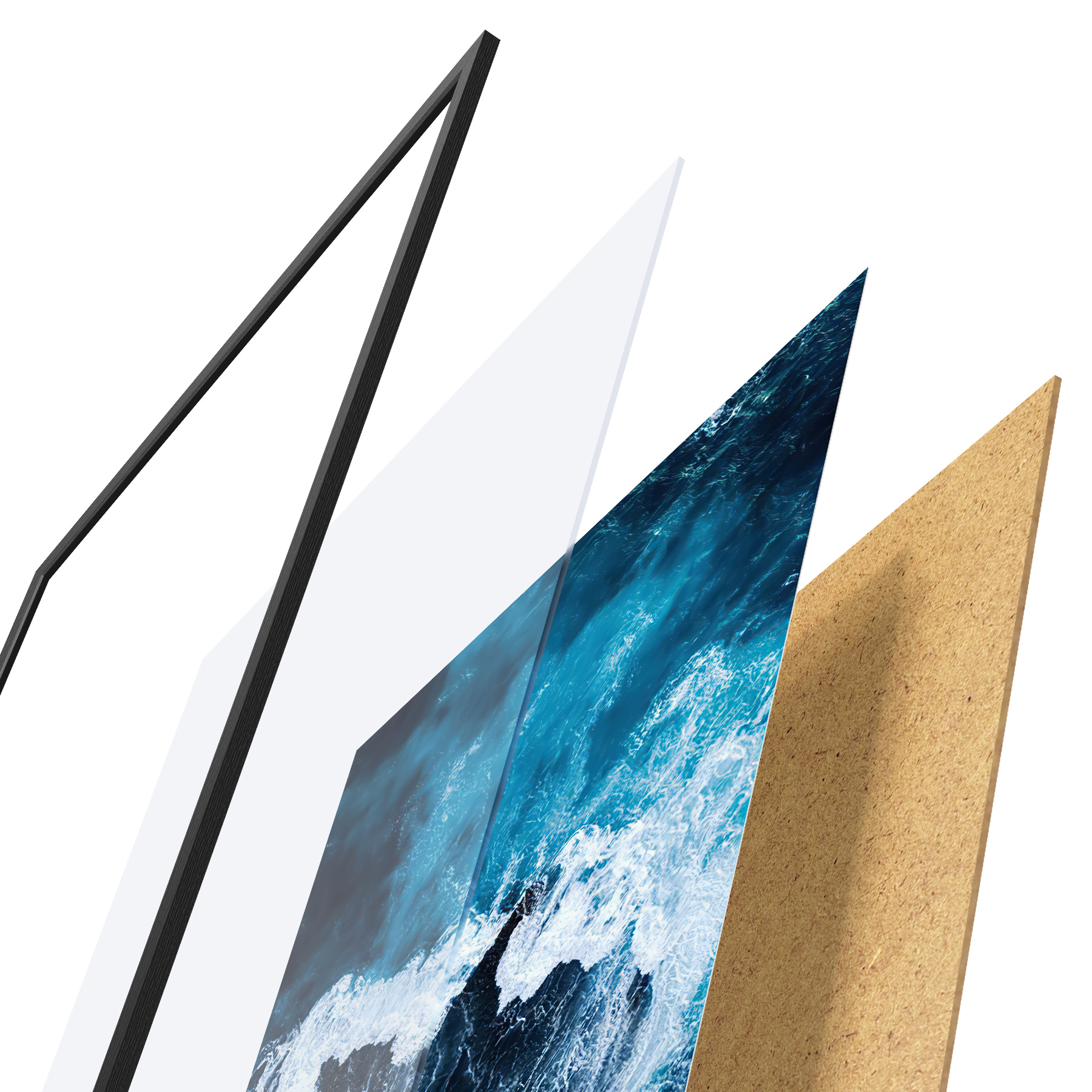 Plakāts sastāv no rāmja, pleksstikla, iespiestā attēla un skaidu plātnes pamatnes. Plakātu var uzreiz piekarināt pie sienas, pateicoties aizmugurē esošajiem stiprinājumiem.