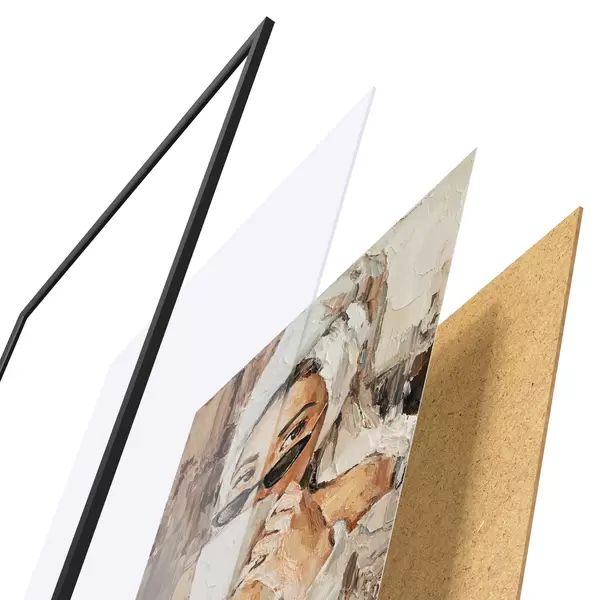 Plakāts sastāv no rāmja, pleksstikla, iespiestā attēla un skaidu plātnes pamatnes. Plakātu var uzreiz piekarināt pie sienas, pateicoties aizmugurē esošajiem stiprinājumiem.