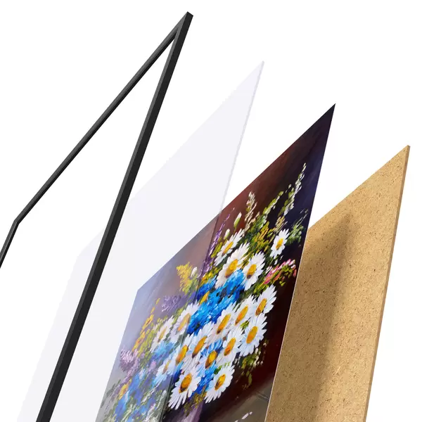Plakāts sastāv no rāmja, pleksstikla, iespiestā attēla un skaidu plātnes pamatnes. Plakātu var uzreiz piekarināt pie sienas, pateicoties aizmugurē esošajiem stiprinājumiem.