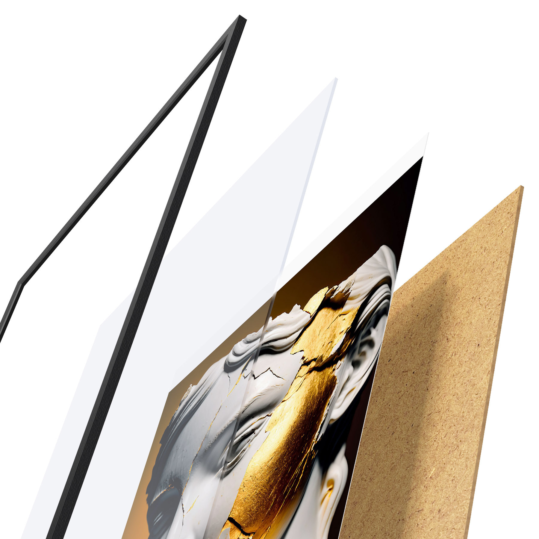 Plakāts sastāv no rāmja, pleksstikla, iespiestā attēla un skaidu plātnes pamatnes. Plakātu var uzreiz piekarināt pie sienas, pateicoties aizmugurē esošajiem stiprinājumiem.