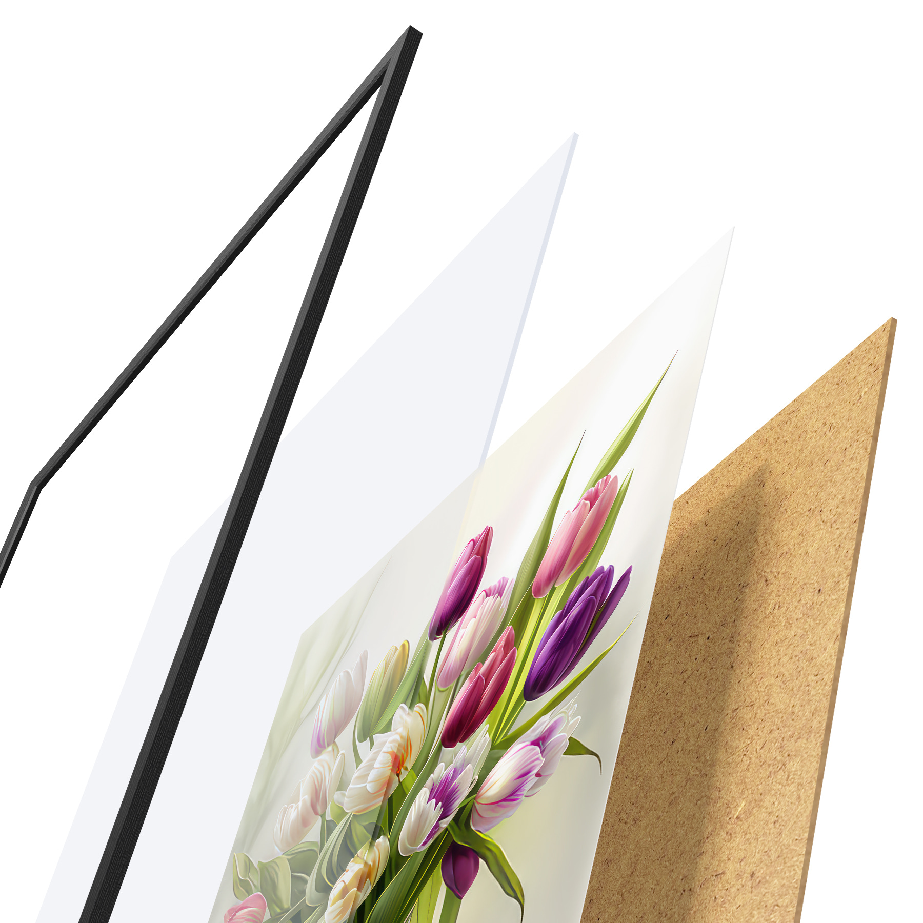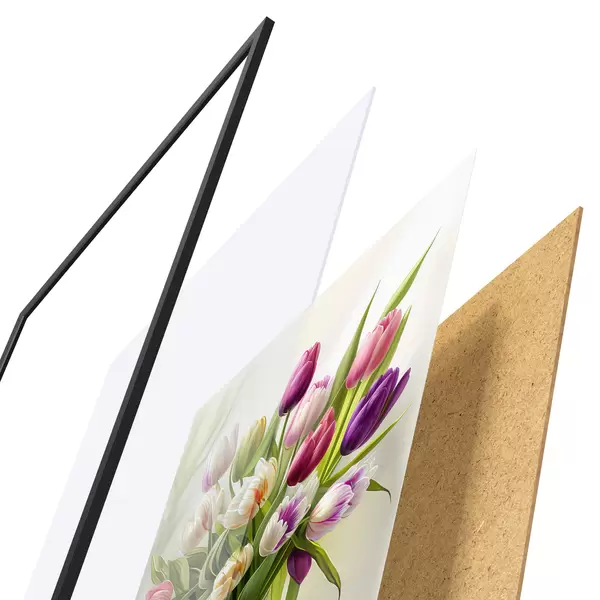 Plakāts sastāv no rāmja, pleksstikla, iespiestā attēla un skaidu plātnes pamatnes. Plakātu var uzreiz piekarināt pie sienas, pateicoties aizmugurē esošajiem stiprinājumiem.