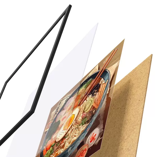 Plakāts sastāv no rāmja, pleksstikla, iespiestā attēla un skaidu plātnes pamatnes. Plakātu var uzreiz piekarināt pie sienas, pateicoties aizmugurē esošajiem stiprinājumiem.