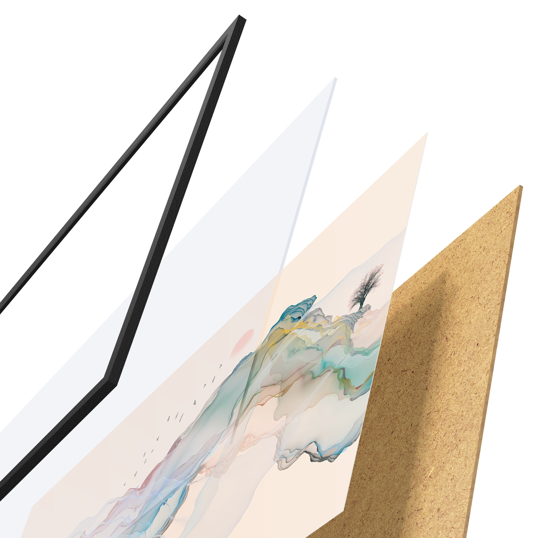 Plakāts sastāv no rāmja, pleksstikla, iespiestā attēla un skaidu plātnes pamatnes. Plakātu var uzreiz piekarināt pie sienas, pateicoties aizmugurē esošajiem stiprinājumiem.