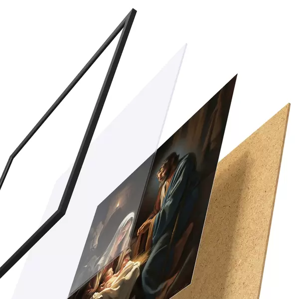 Plakāts sastāv no rāmja, pleksstikla, iespiestā attēla un skaidu plātnes pamatnes. Plakātu var uzreiz piekarināt pie sienas, pateicoties aizmugurē esošajiem stiprinājumiem.