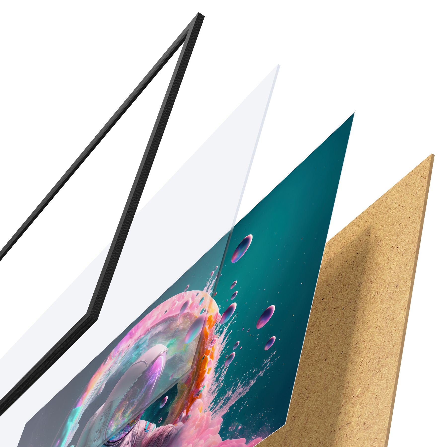 Plakāts sastāv no rāmja, pleksstikla, iespiestā attēla un skaidu plātnes pamatnes. Plakātu var uzreiz piekarināt pie sienas, pateicoties aizmugurē esošajiem stiprinājumiem.