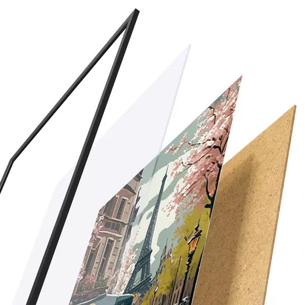 Plakāts sastāv no rāmja, pleksstikla, iespiestā attēla un skaidu plātnes pamatnes. Plakātu var uzreiz piekarināt pie sienas, pateicoties aizmugurē esošajiem stiprinājumiem.