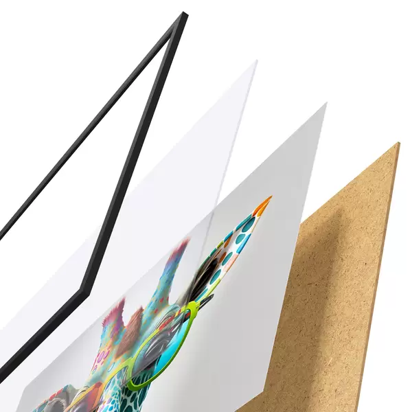 Plakāts sastāv no rāmja, pleksstikla, iespiestā attēla un skaidu plātnes pamatnes. Plakātu var uzreiz piekarināt pie sienas, pateicoties aizmugurē esošajiem stiprinājumiem.