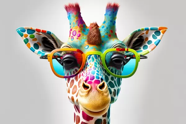 Plakāts Krāsaina žirafe ar stilīgām brilles Nr f33533